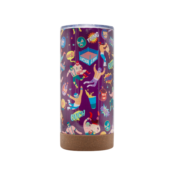 Un termo con base de corcho inspirado en la energía y el colorido de la lucha libre.